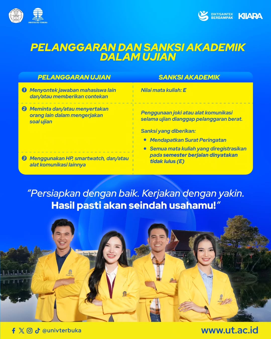 Ujian Tatap Muka untuk mahasiswa Diploma dan Sarjana kembali hadir dengan beberapa ketentuan penting yang harus diketahui seluruh peserta.