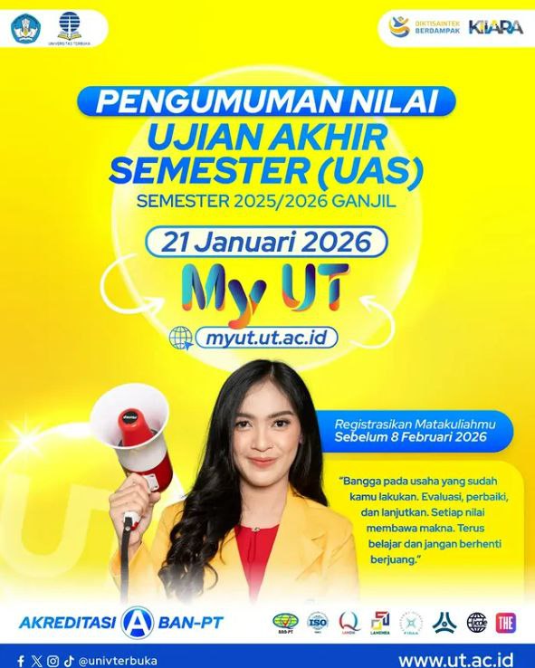 Nilai Ujian Akhir Semester (UAS) semester 2025/2026 Ganjil sudah dapat diakses mulai 21 Januari 2026. Inilah waktunya melihat hasil dari kerja keras, komitmen, dan perjuanganmu selama satu semester penuh. Apa pun hasilnya, jadikan sebagai bahan evaluasi untuk melangkah lebih baik ke depan. Nilai yang belum sesuai bukan akhir segalanya, dan hasil yang memuaskan pun tetap perlu diiringi dengan sikap rendah hati serta semangat untuk terus belajar.