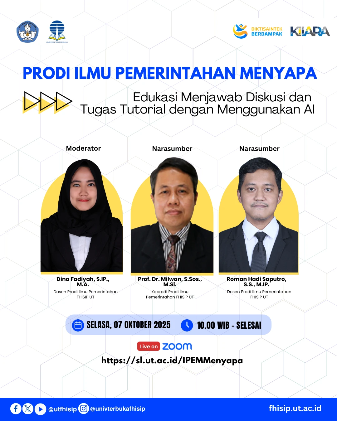 #ProdiIlmuPemerintahan #UT #FHISIP #WebinarGratis #TeknologiEdukasi #AIinLearning
