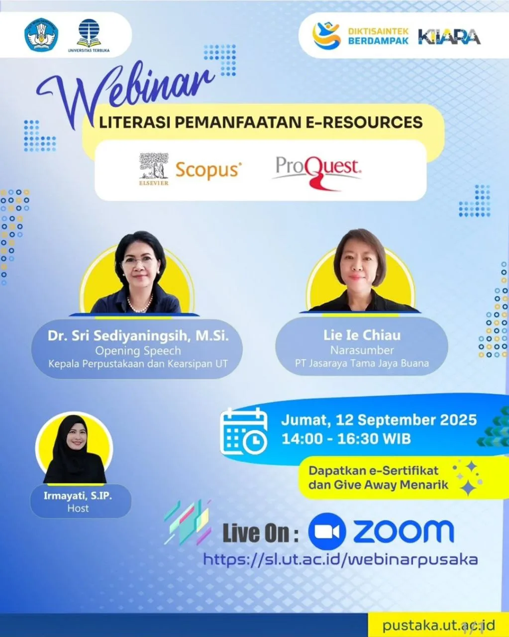 #PerpustakaanDigital #UniversitasTerbuka #Webinar #Scopus #PROQUEST #OnlineLearning #eLibrary #DigitalLibrary #eResources #eJournal #DigitalLibrary